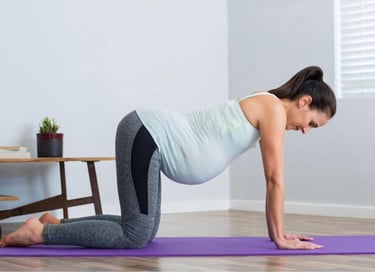 La posizione in quadrupedia, che si pratica durante ogni lezione di Yoga prenatale, aiuta il feto a posizionarsi correttamente e facilita il momento del parto.